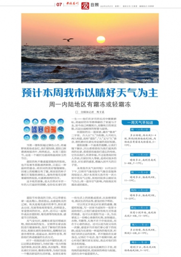 预计本周我市以晴好天气为主