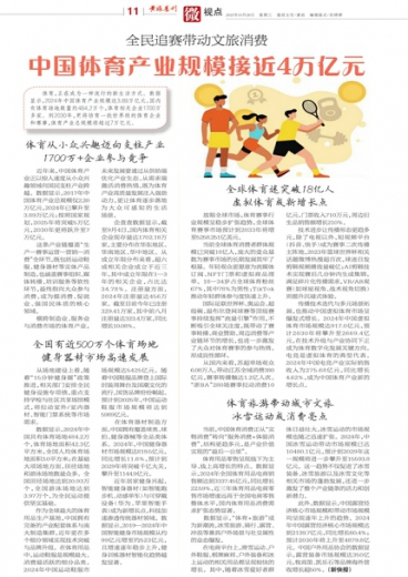 中国体育产业规模接近4万亿元